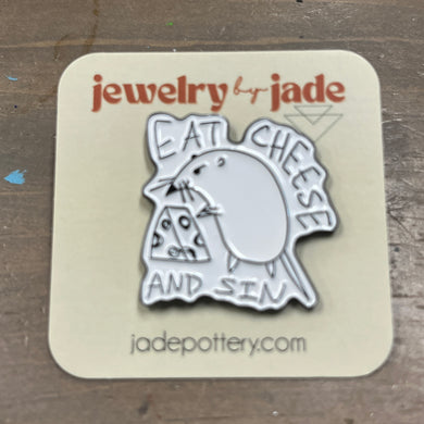 eat cheese and sin rat funny enamel pin