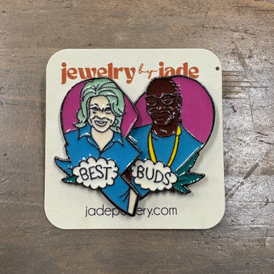 Best Buds best friends lighter stoned funny retro style enamel pin