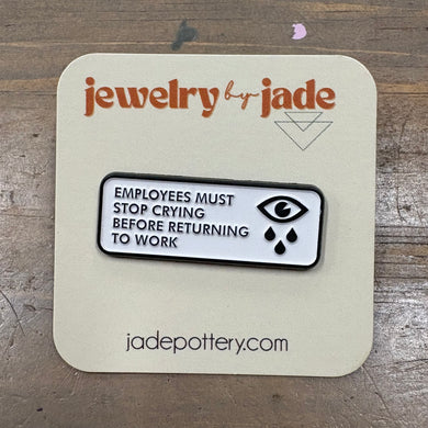 employees must stop crying before returning to work enamel pin FREE SHIPPING OVER $45