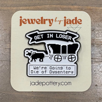 get in loser we’re going to die of dysentery enamel pin FREE SHIPPING OVER $45