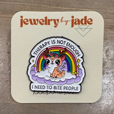 therapy is not enough I need to bite people enamel pin FREE SHIPPING OVER $45