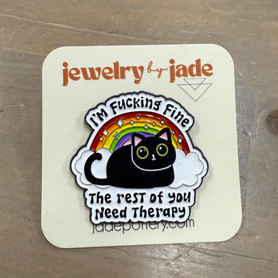I'm fine you need therapy cat enamel pin FREE SHIPPING OVER $45