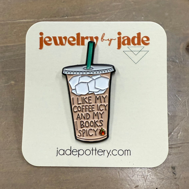 iced coffee books spicy enamel pin FREE SHIPPING OVER $45