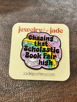 Chasing That Scholastic Book Fair High Enamel Pin free shipping over $45