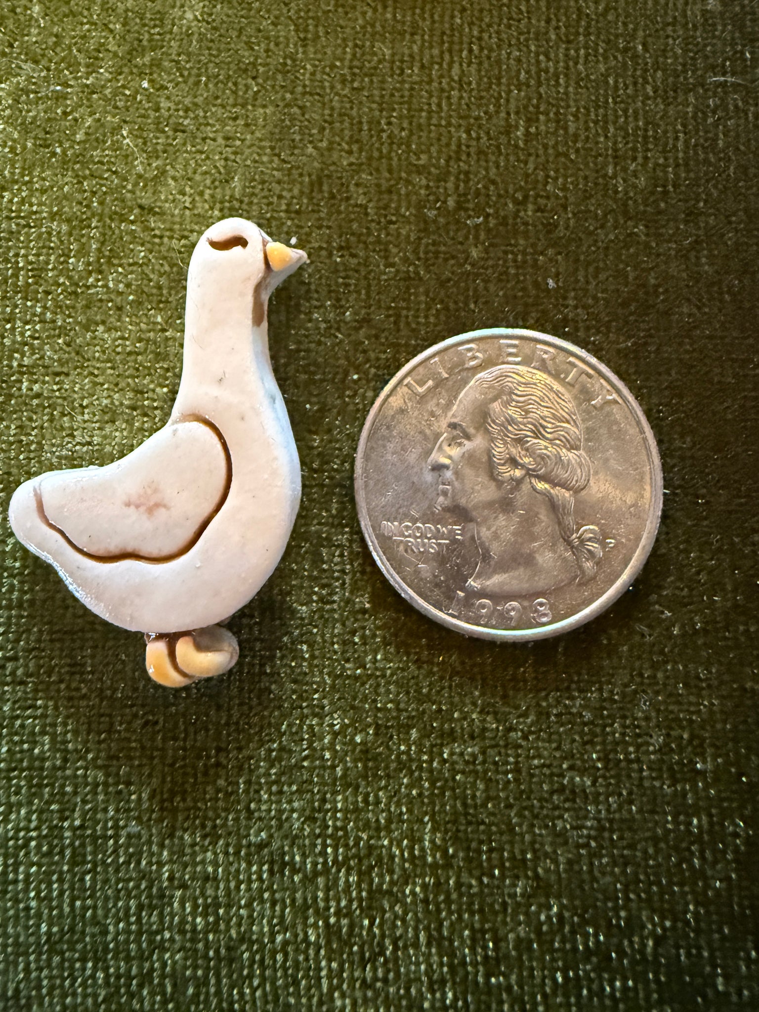 Each pin is individually crafted from porcelain, hand-glazed, and kiln-fired, giving it a soft, glossy finish and its own unique personality. No two geese are exactly alike — which feels right for a silly goose.